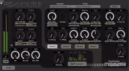 Excalibur is a stereo multi-effects plug-in unlike any other. With several modulation, pitch-shifting, and dynamics effect modules, Excalibur has the creative tools to tackle any music production, post production, or sound design project. Four independent voice oscillators can subtly change the timbre of your recordings or drastically transform any audio source with swirling kinetic effects.