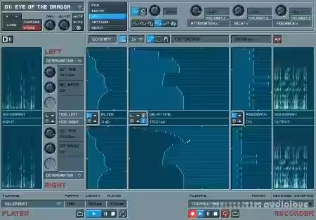 The NI-SPEKTRAL DELAY differs from the many other audio effects in that it uses real-time FFT (Fast Fourier Transformation) to split each channel of a stereo signal into as many as 160 separately modifiable frequency bands (even up to 1024 bands internally). The level, delay time and feedback amount for each of this bands can be set separately. Additionally, various modulation effects can be applied to the signal in the frequency domain, which allows for even further sound manipulation.
