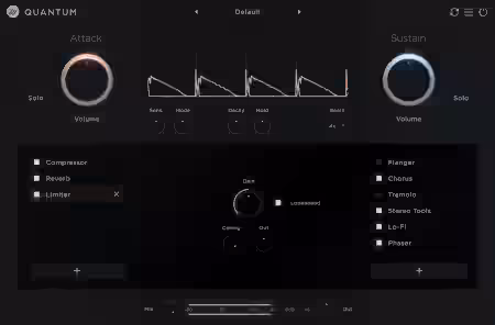Quantum is an audio plugin that separates an audio signal into its attack and sustain parts. With 16 built-in high quality effects that you can apply to each path independently. Quantum redefines what's possible in transient shaping.